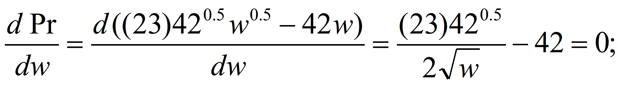 Изложенная ранее процедура определения оптимального соотношения вводимых факторов производства (с использованием частных производных для определения предельных продуктов) может быть с успехом использована для исследования производственных функций любого вида, включая степенную функцию.