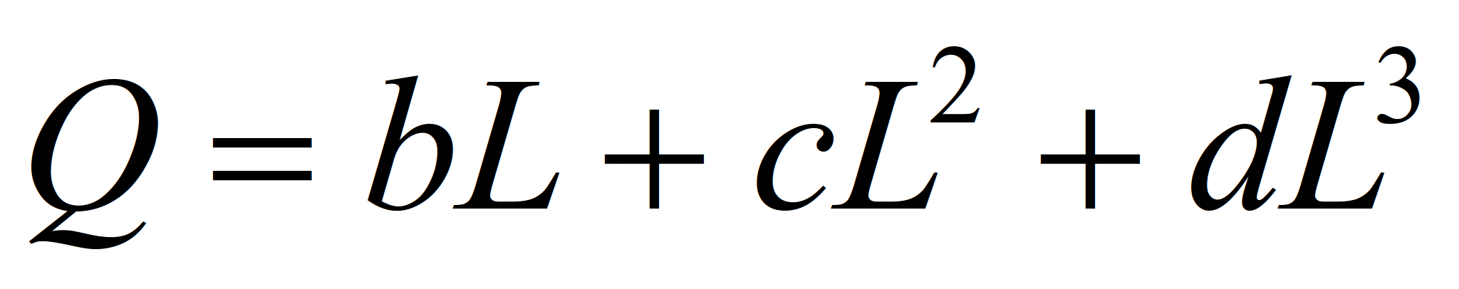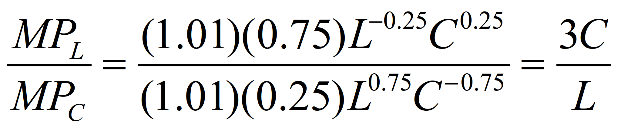 P=k Lβ1 Cβ2= 1.01L0.75C0.25