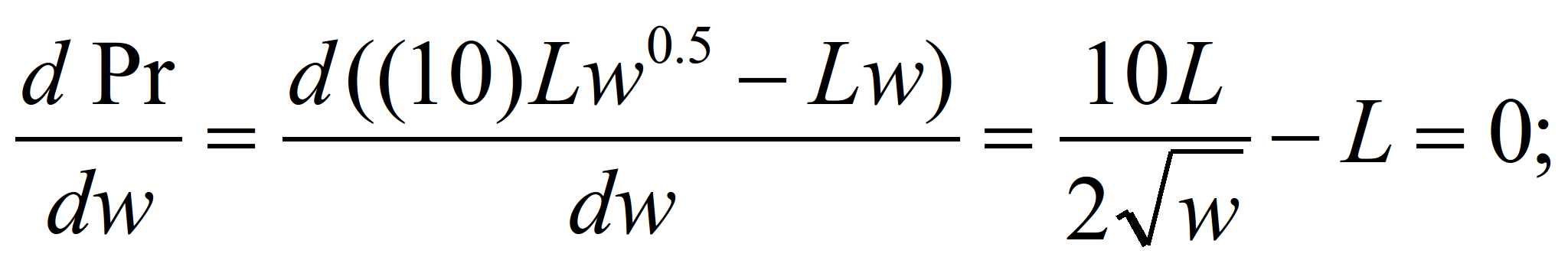 Применяя общее уравнение к нашей конкретной задаче и полагая X1 = С, a X2 = L, мы получаем тот же самый ответ при значительно меньших затратах времени на вычисления. Если некоторая степенная функция содержит больше двух переменных вводимых факторов производства, то в таком случае упрощенная формула может быть использована для вычисления оптимального соотношения любой пары одновременно изменяющихся вводимых факторов, которые входят в эту степенную функцию.