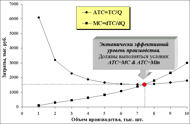 Таким образом, для получения функциональной зависимости общих затрат от объема производства необходимо рассчитать значения TC, которые соответствуют ряду значений объема производства.