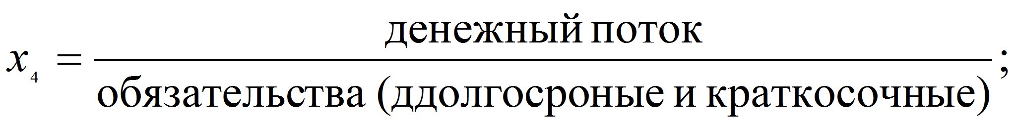 где Х4 –– соотношение между балансовой стоимостью собственного капитала и заемных капиталом.