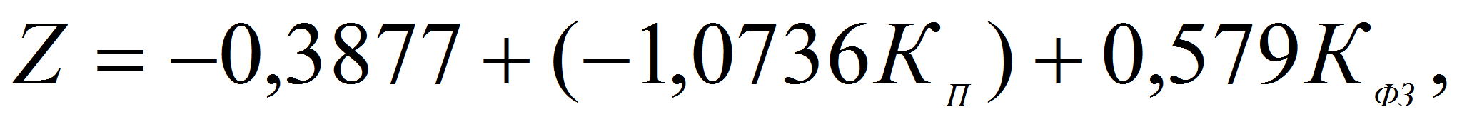 Отсюда формула расчета вероятности банкротства имеет следующий вид: