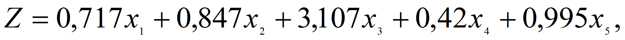 При Z > 0,3 вероятность банкротства низкая, а при Z < 0,2 высокая.