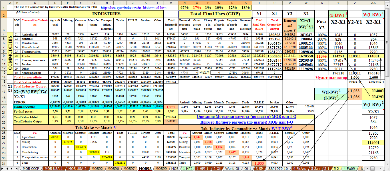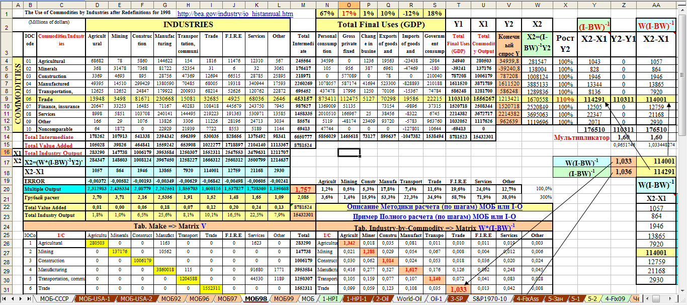 The Make of Commodities by Industries (I-O definition), - в РФ это таблица известна под названием "Ресурсы товаров и услуг"