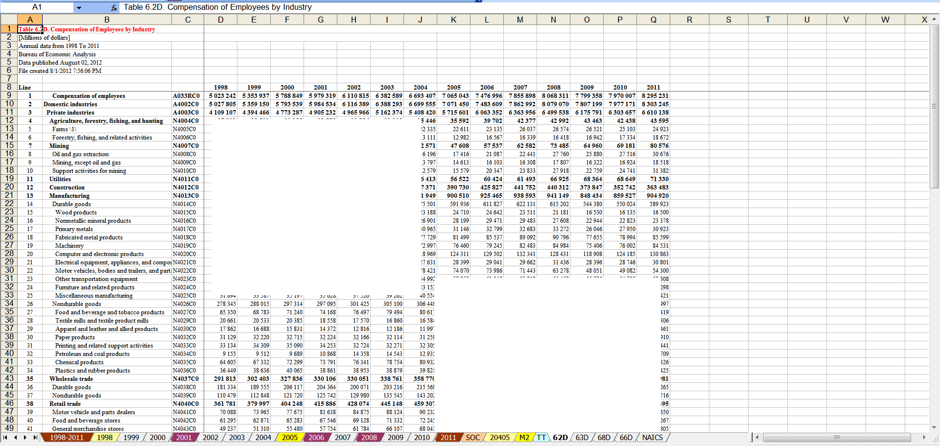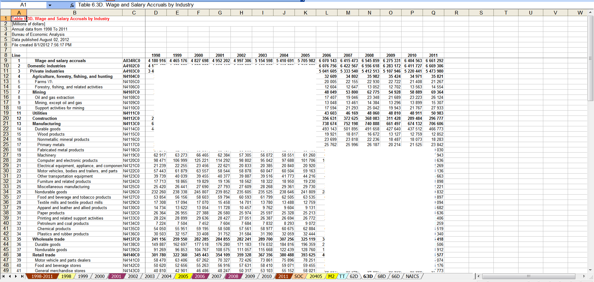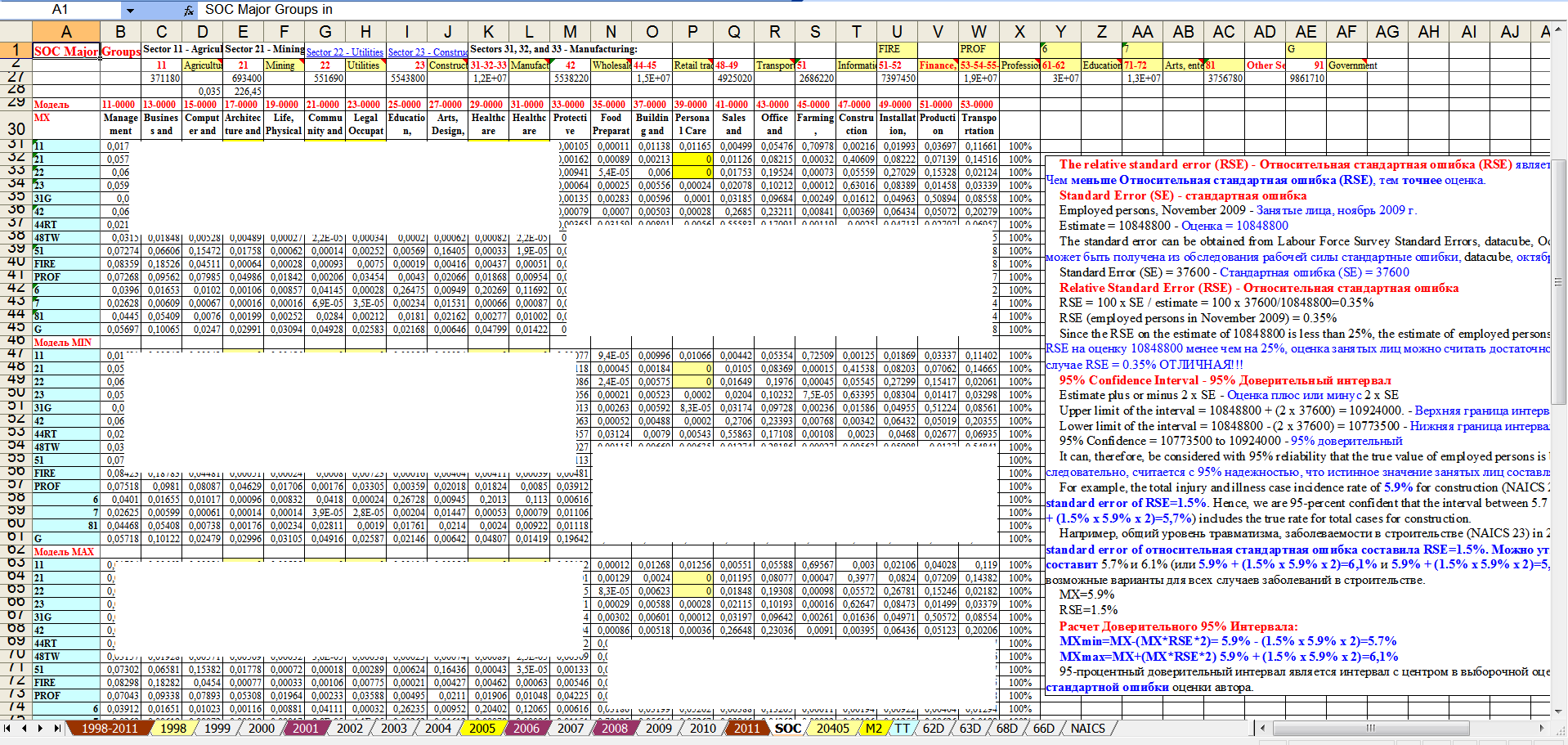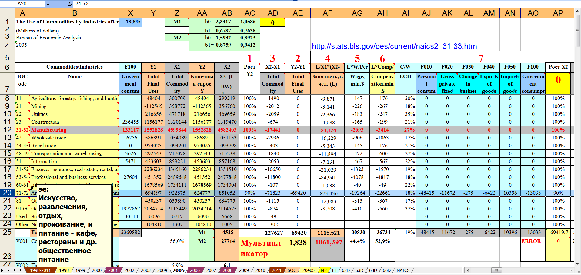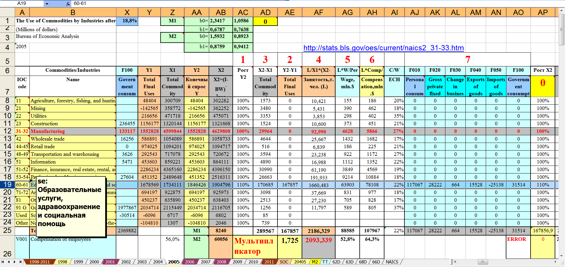В рамках старого (действовал до 1998г.), промышленного стандарта США (SIC - Standard Industrial Classification), расчет велся для более 450 отраслей экономики США.